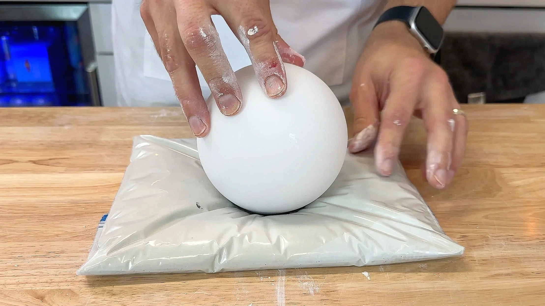 This is the secret sauce: fold/tighten the bag so the plaster bulges in the center. A smaller bag = a fuller pillow look.