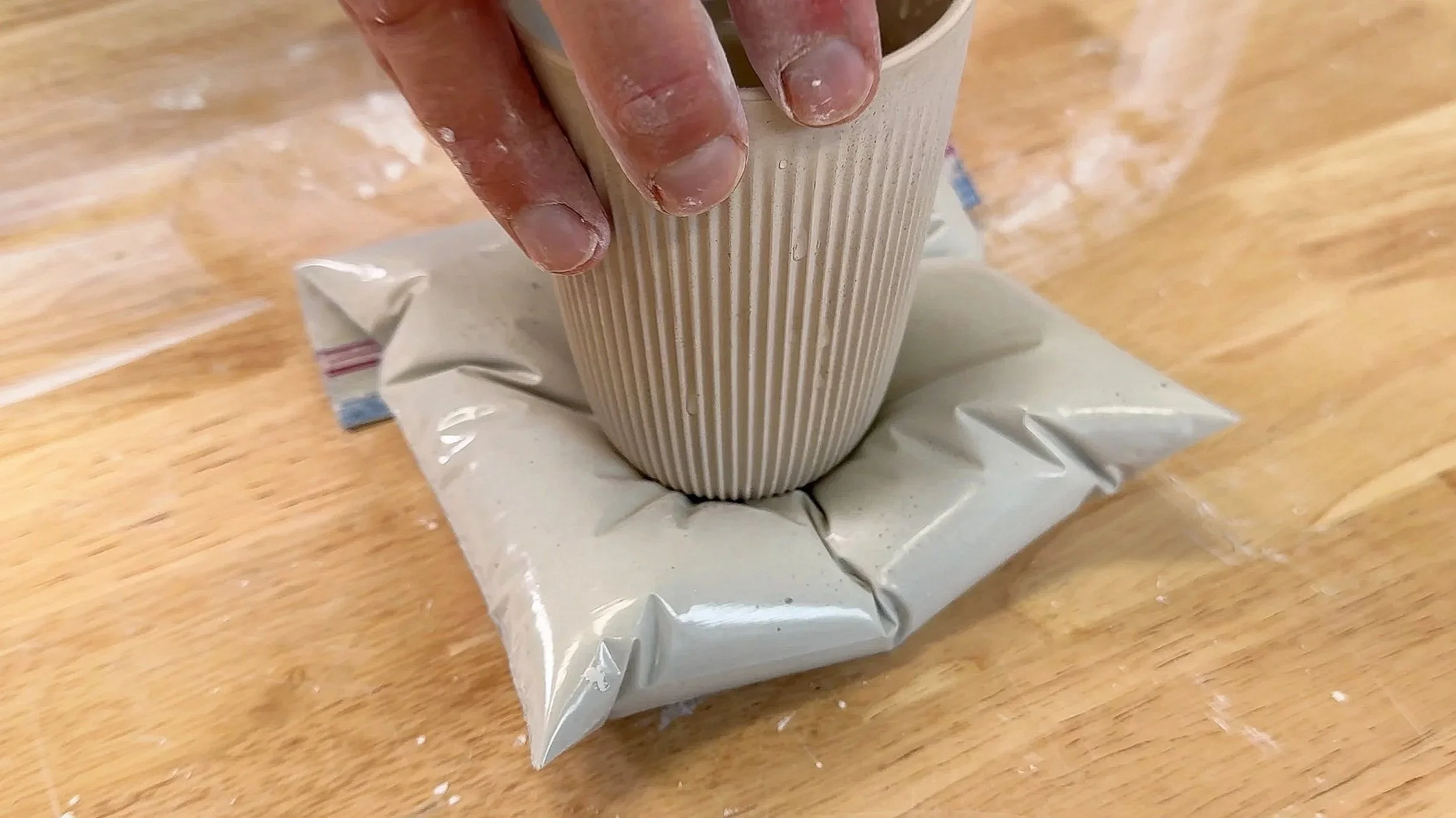In the video, we even filled the cup with water to add weight, which creates deeper, more dramatic wrinkles.