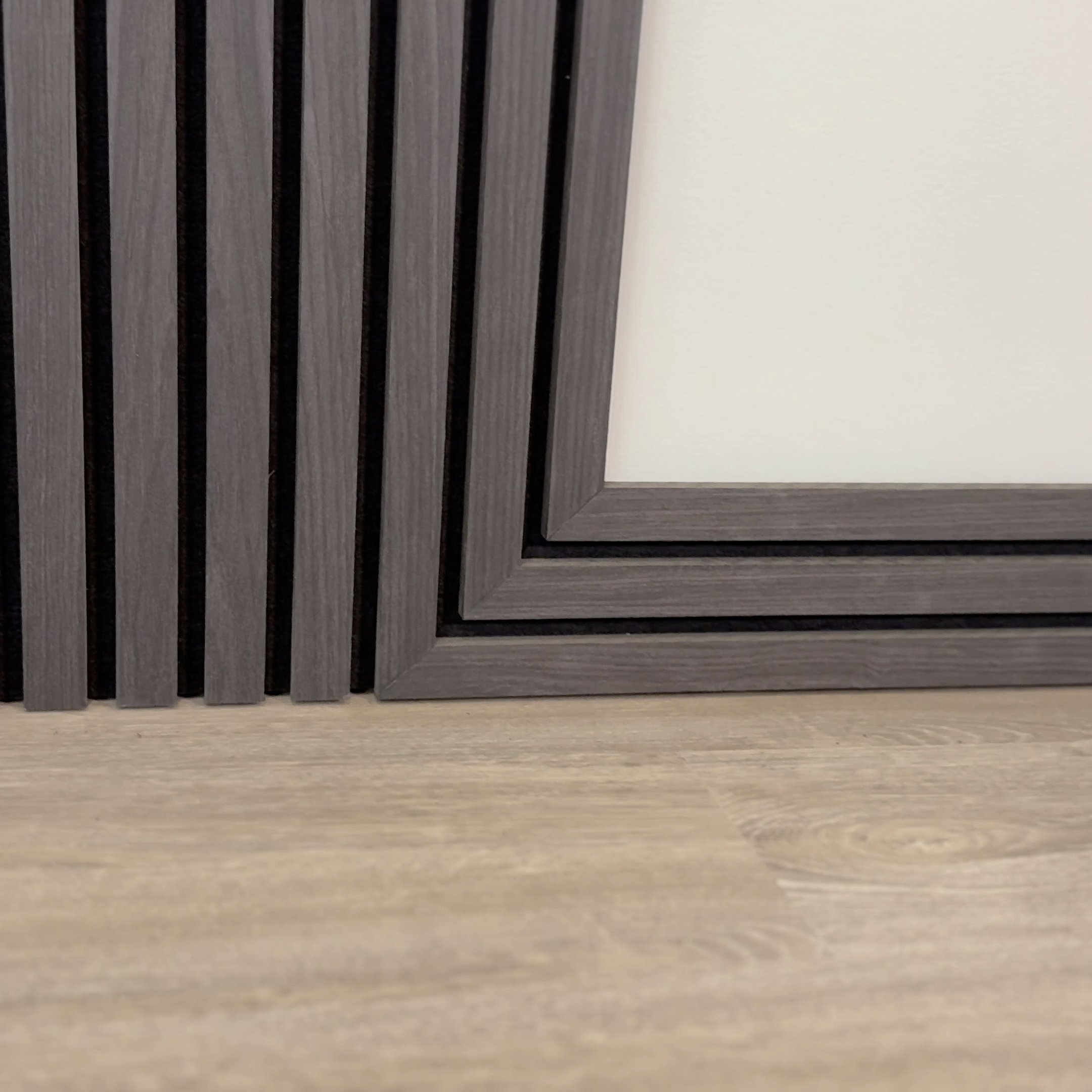 Mitred segments of wall panels, used to create a custom baseboard effect.