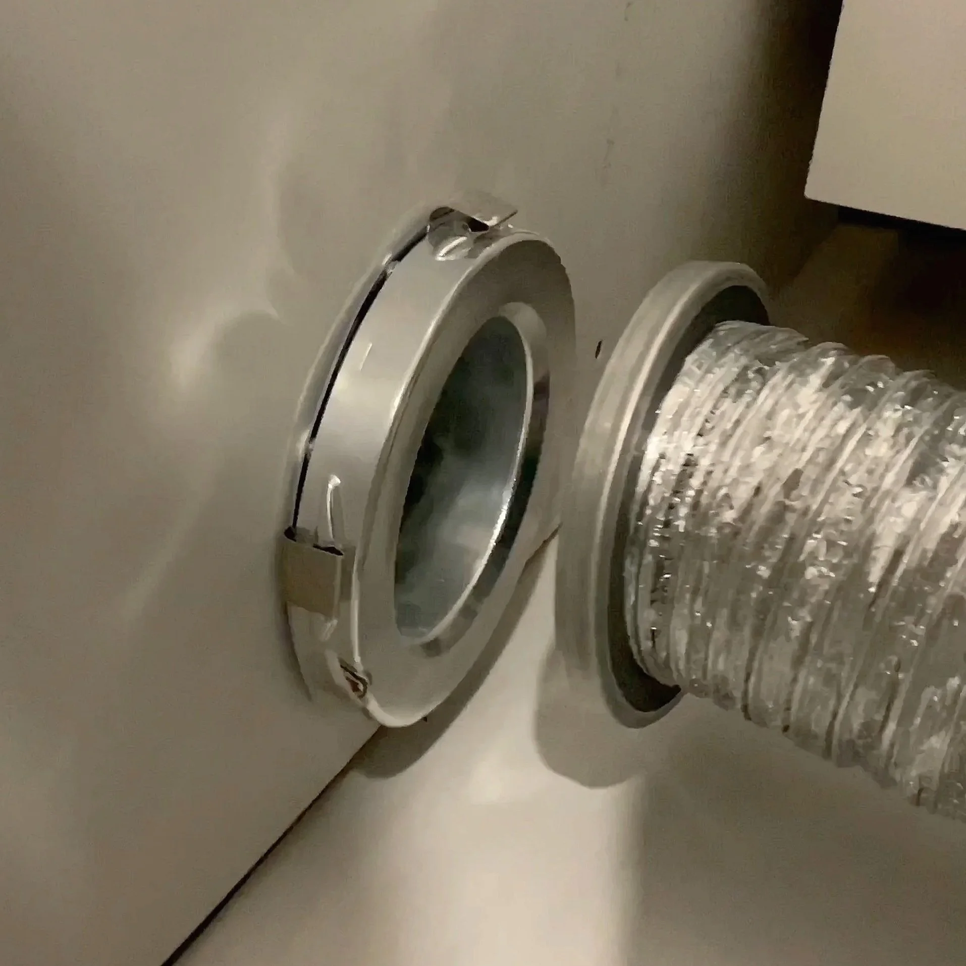 Attach the remaining MagVent collar to the dryer’s exhaust port. This is the piece that will magnetically lock to the wall connector when you push the dryer back into place.