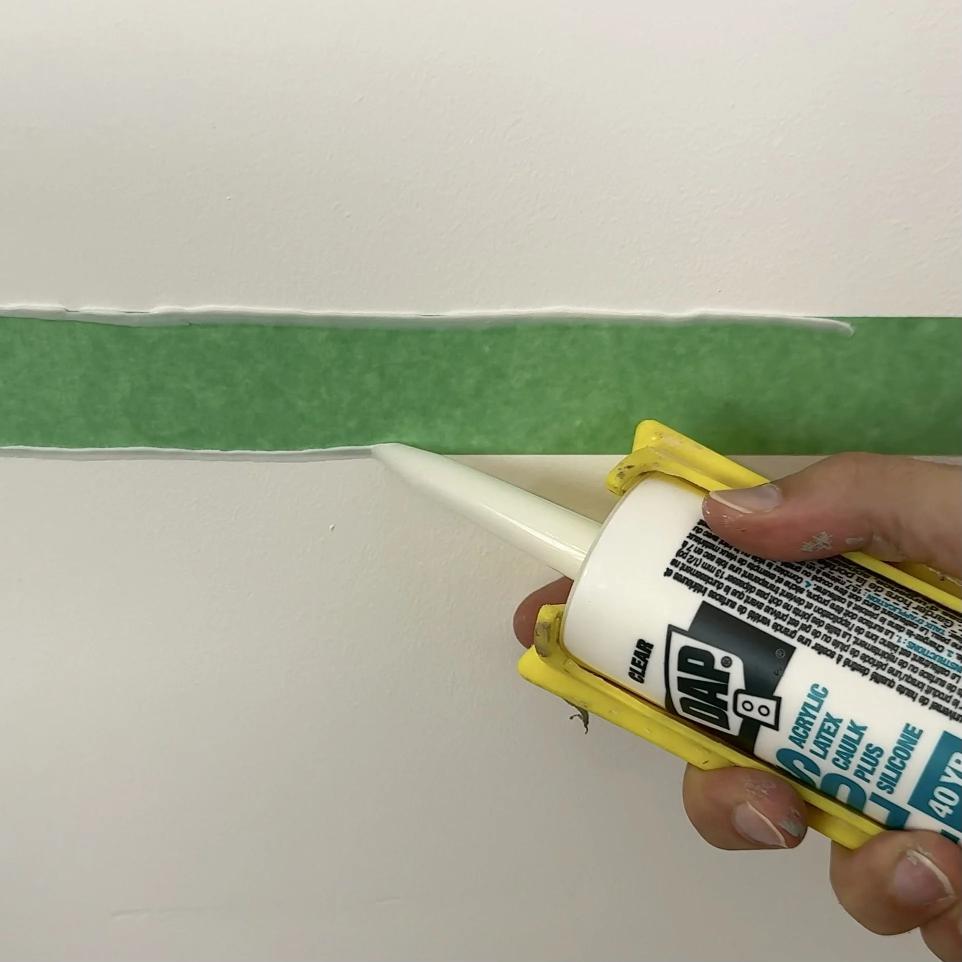 When you want ultra-crisp edges, a clear latex sealant can take your tape game to the next level. After applying painter’s tape to the wall, we ran a thin bead of clear sealant along the edge and smoothed it in with a finger. Once painted, the results were excellent: no paint bleed and a line almost as sharp as if it were cut by a machine. This is a fantastic method if your walls are particularly bumpy, rough or there are large voids and gaps. The downside? This method requires an extra product on hand and must be done quickly before the sealant sets.