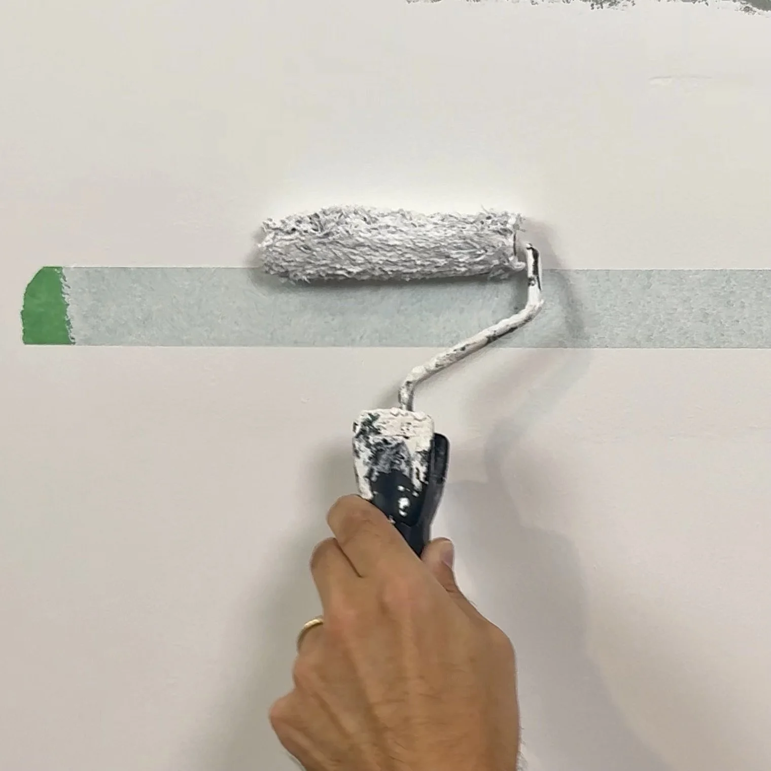 We started with the most common option: regular green painter’s tape. Applied directly to the wall with no extra tricks, it gave us decent results when tested with both a brush and a roller. While the line was cleaner than freehand painting, there was still some bleed-through, proving that painter’s tape alone isn’t always enough if you’re after perfection.
